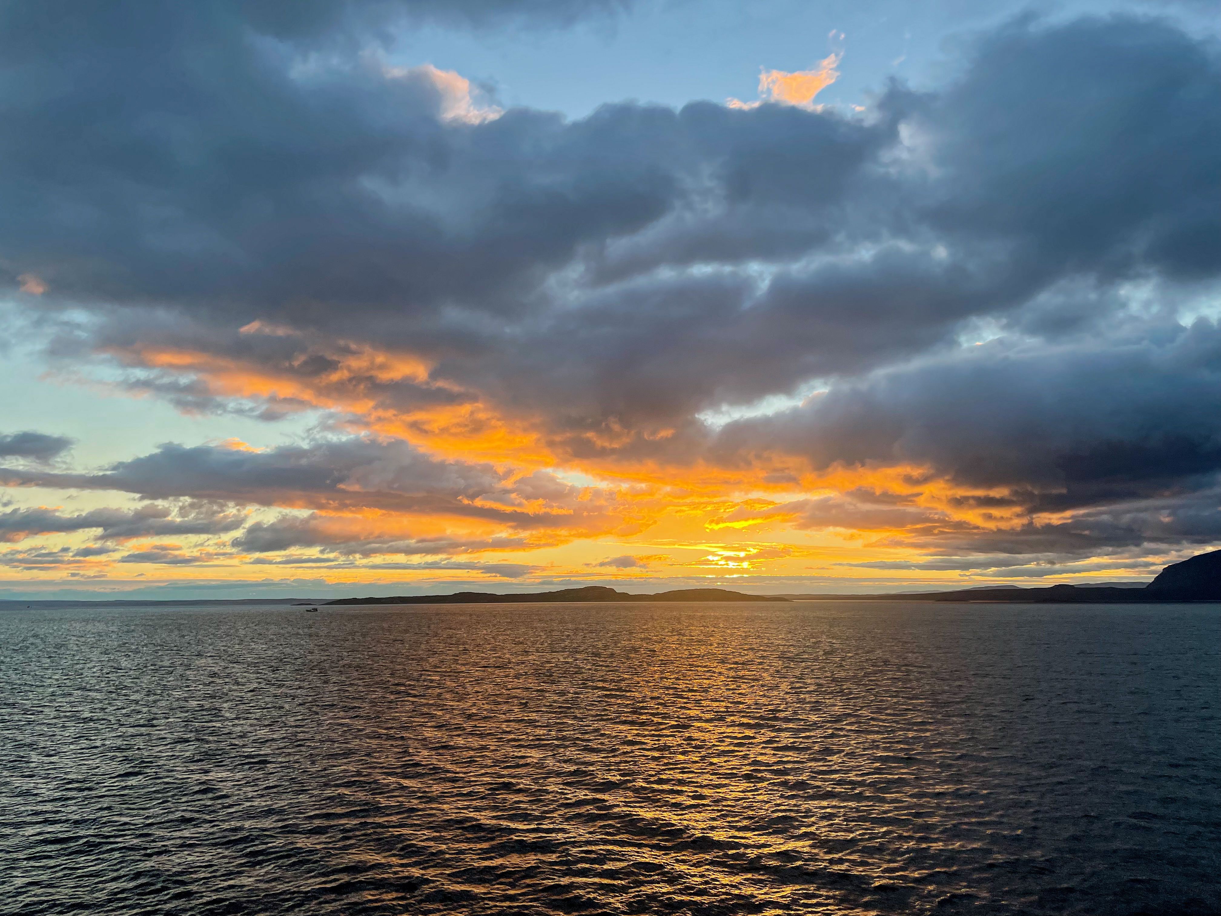 Early in the morning, heavy clouds covered the mountains and fjords when the sun tried to come through, creating an incendiary red-orange-yellow atmosphere. Most of the morning was decidedly wet. Winds from the southwest Pacific, charged with moisture picked up from the ocean, crash against the Andes and discharge all their might. Luxurious forests and glaciers can exist in these latitudes due to the weather systems. We found a number of seabirds and whales during the day as we navigated through one of the first protected marine areas of southern South América. We made our way to Puerto Natales, which will be our port of call for our visit to the world famous Torres del Paine National Park.
