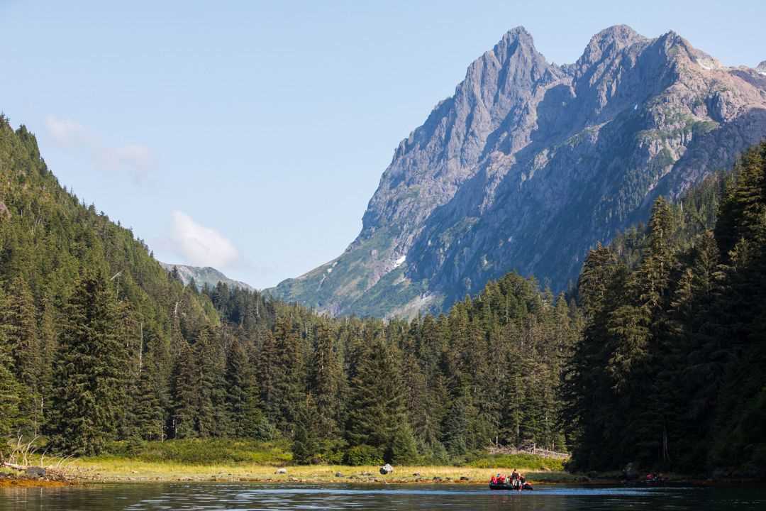 Glassy calm waters coupled with warm rays of sunshine made for a stupendous day exploring aboard National Geographic Venture in Southeast Alaska! Waterfalls gently tumbled down from great heights, and between the tall trees in the narrow fjord of Patterson Bay located on the southern end of Baranof Island. The cool sea water flooding this glacially carved valley was unusually clear and allowed viewers to observe the undersea environment. We peered down the long stripes of kelp and spotted multiple species of sea stars. The most dramatic discovery was a large aggregation of moon jellies, numbering in the thousands. We also enjoyed the acrobatic displays of salmon jumping in the air and quickly darting up the nearby stream.