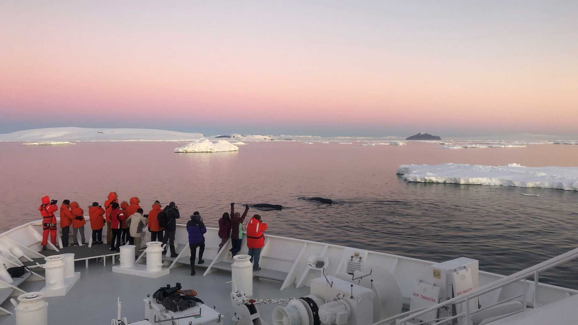 As if all that weren’t enough, during dinner the captain parked the ship in an area of fast ice. The gangway was lowered, and we were all treated with an evening stroll on the ice, complete with champagne! Everyone was treated to one final surprise of the day when naturalists Marylou and Rich (a.ka. Mad Dog) exchanged vows with the blessing of the captain! It was a truly long austral summer day filled with natural beauty, exploration, and—best of all—love.