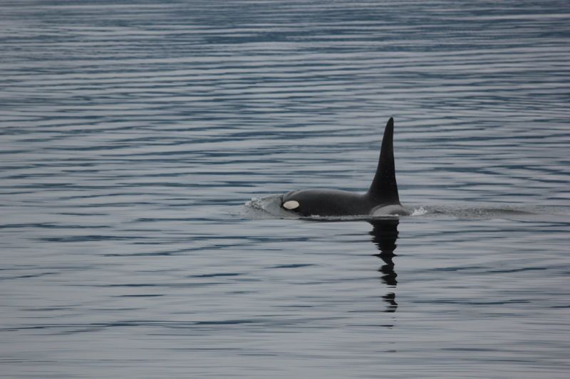 During the morning, we explored the scenic cove of Pavlof’s Harbor on the southeast shore of Freshwater Bay, Chichagof Island, and area known for its healthy salmon stream. We were optimistic that we might still see a bear during our last day exploring Southeast Alaska. We were not disappointed! At the base of a small waterfall, we spotted a coastal brown bear casually gorging itself on salmon as we watched, spellbound, from the safety of our expedition landing crafts only a few yards away. The bear, enjoying its meal, seemed oblivious or at least indifferent to our presence. For nearly an hour, we watched the animal devour fish after fish until it calmly walked up the river bank rocks and into the forest. Late summer and early fall is the time to fatten up and prepare for the long winter ahead. Come November and the onset of snow, brown bears will leave the coastline and head to higher elevations near or above treeline. Biologists debate whether bears truly hibernate or just den up and sleep during the winter. Pregnant sows will give birth to tiny, one-pound cubs while sleeping within the den and nurse them until spring. We returned to the ship after our morning adventures for lunch and were relaxing in the lounge when another bear was spotted on the beach south of Pavlof Harbor. Although more distant than our first encounter, we all enjoyed another exceptional sighting of a coastal brown bear. But the wildlife viewing wasn’t over yet! As we sailed south along Chatham Strait, we encountered a pod of killer whales swimming nearby. Crusing alongside the pod, we counted a group of about ten that included one large male. His large dorsal fin rose nearly six feet above the water‘s surface. Guests spent the remaining time reading or chatting with friends. We wrapped up our day with the captain‘s dinner followed by the guest photo slideshow, which we enjoyed as we sailed toward Sitka through Peril Strait. Have we seen it all? Hardly! But we left with a sense of fulfillment, knowing that we saw a lot! And maybe one day we‘ll return and finally see some elusive moose!