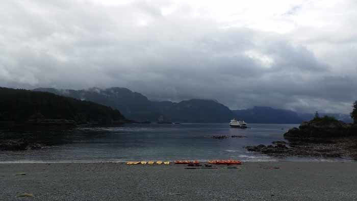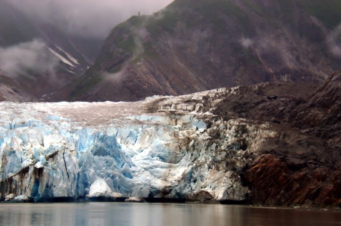 After running all night around the northern tip of Admiralty Island and down Stephens Passage, we “crossed the bar” at Holcomb Bay at 5 a.m. in order to reach our destination at the South Sawyer Glacier in Tracy Arm-Ford’s Terror Wilderness Area in Southeast Alaska. “The Bar” is a term for the terminal moraine where the bottom of Stephens Passage rises from the depths to around 40 feet and indicates where the Sawyer and South Sawyer Glaciers once formed a magnificent face of ice. We cruised throughout the morning, stopping briefly at the place where the face of Sawyer Glacier now resides, and then moved closer to the South Sawyer Glacier where we disembarked on our expedition landing craft to view waterfalls, icebergs, harbor seals, and glacial calving.