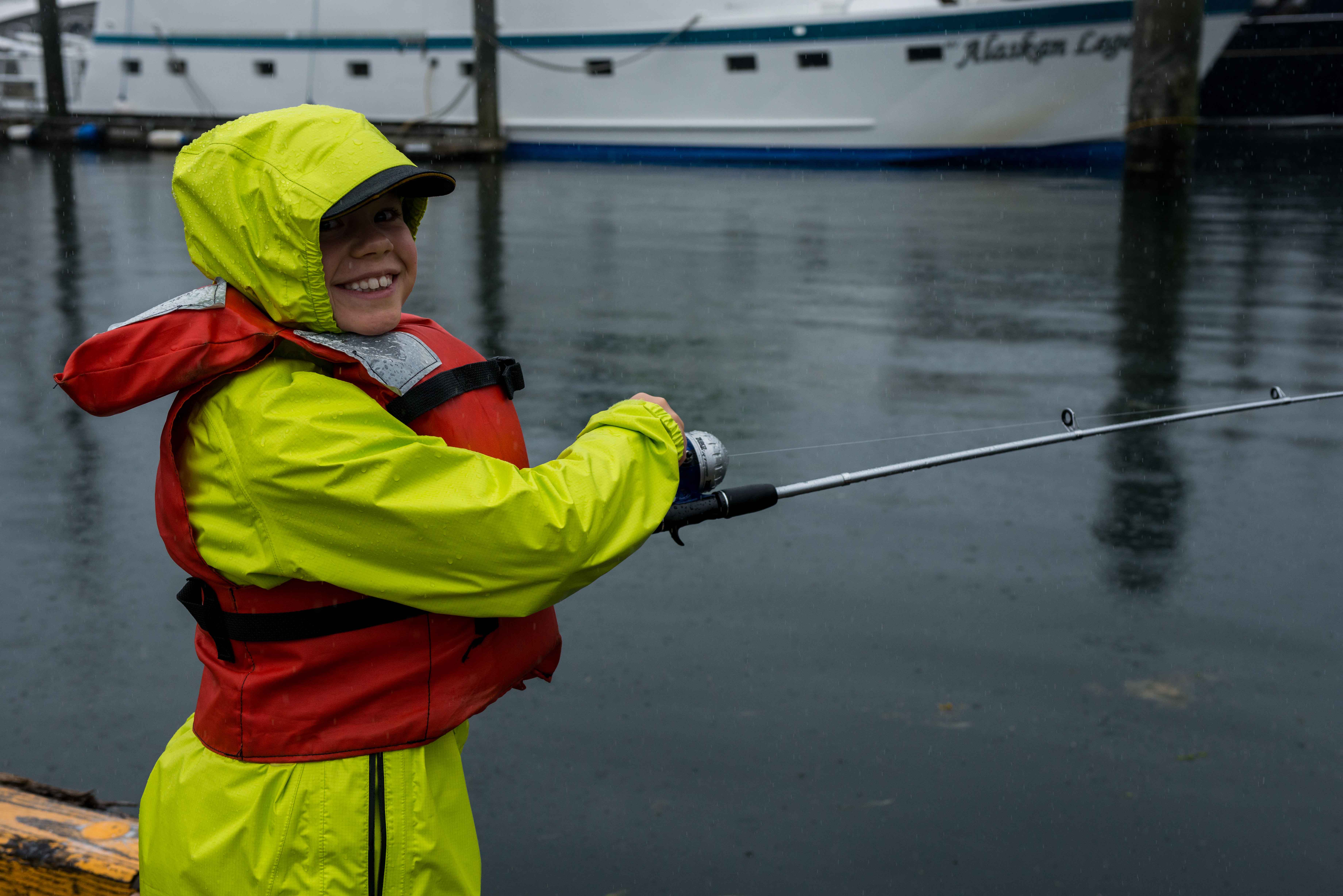 The rest of the day was spent exploring this beautiful fishing town in Southeast Alaska. The exploration was done through various walks. The dock tour was held by our undersea specialist Ana, who gave us an in-depth look at the various types of fisheries this town is so dependent on. Some intrepid explorers ventured into the rain to see the town on bicycles, and my group chose to explore the town through our camera lens on a photo tour to document the town through images. I will get back to my excursion, but before that, I must mention probably the most exciting excursion of the day, although most of us on board were not allowed to participate in it: fishing from the dock. As it turns out, anyone under the age of twelve is allowed to fish from the pier without the requisite fishing license. The rules were that the young fishermen needed to wear their life jackets, and were not allowed to receive any assistance from their parents unless their parents held a valid Alaskan fishing license. The children had to bait the hooks themselves, and in the event that they caught any fish, they would need to remove the fish from the hook and release them back into the sea. Fortunately for some of the young anglers, Dockside Mike, our local security man was available to help with the aforementioned tasks. If you are wondering, fish were caught and smiles were had by all.