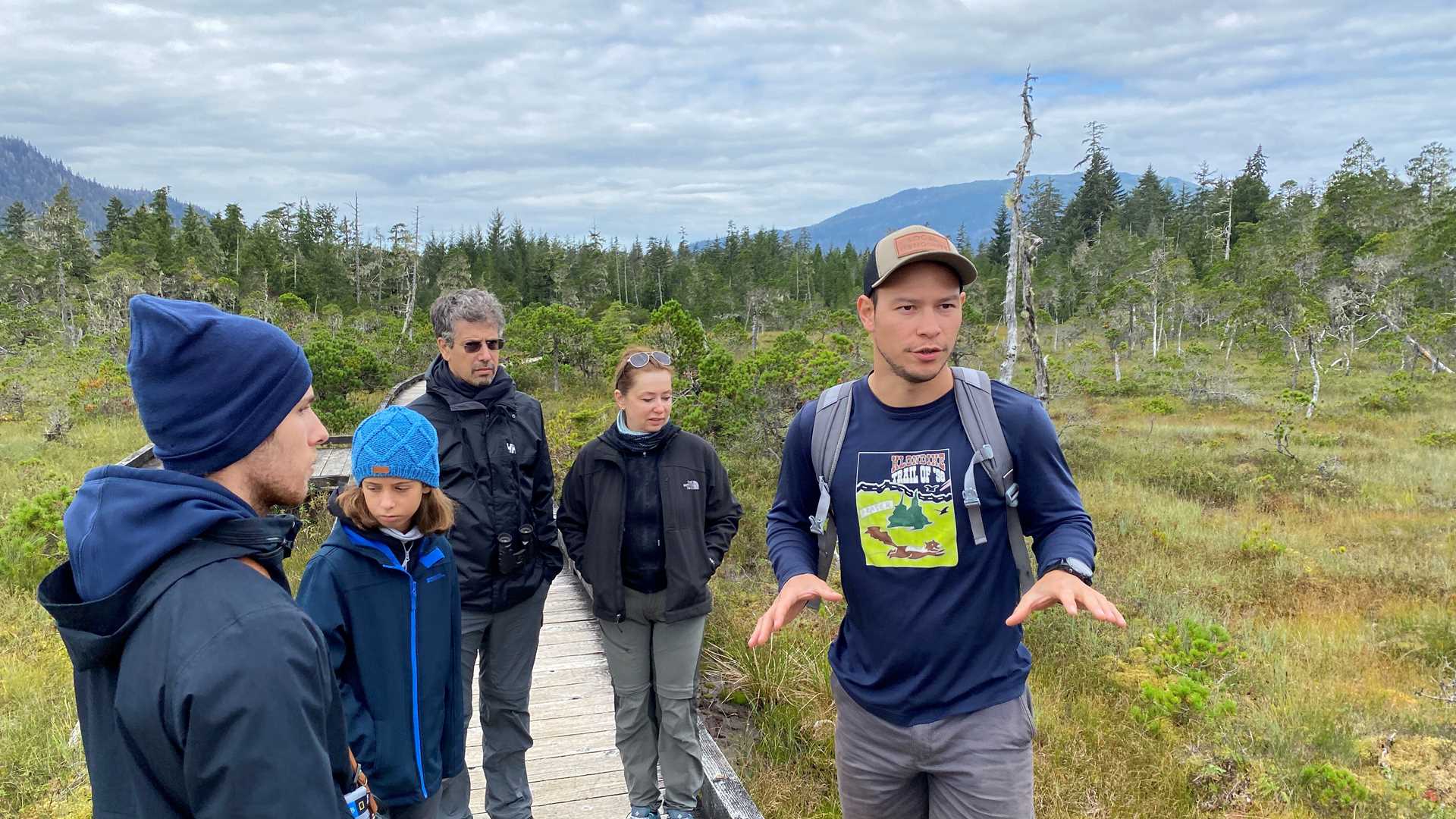 Guests were pleasantly surprised by the simple complexity of the muskeg, an Alaskan bog-type environment. One of our groups even watched as an unbothered Sitka black-tailed deer got within about ten yards of them! In any environment, it’s always an eye-opening experience to be immersed in native cultures. Some of our guests had just that opportunity. We had a Petersburg local lead hikes to a wonderful beach and a natal creek to observe some species of salmon. Other guests got to experience a hike with a local native Tlingit. Our guide described how the native tribe used and still uses foraging methods and how they see the land, from the smallest berries to the tallest trees.