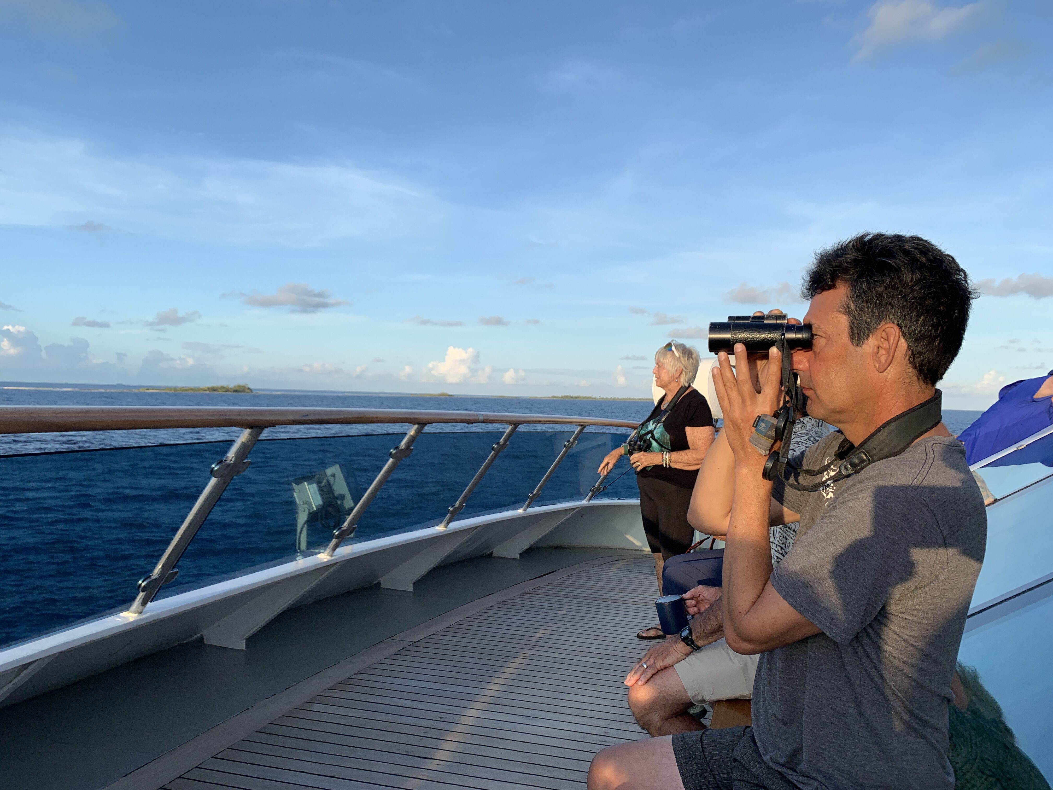 In the early morning, National Geographic Islander II visited Bartolome Island, one of the most iconic places in the Galapagos Islands. We made it all the way to the top to get panoramic pictures of the pinnacle view. Then we headed back to the ship for breakfast and to get ready for the beach, where we planned to practice with our snorkeling gear for the first time. Afterwards, some of our guests enjoyed deep-water snorkeling, and others took tours in the glass-bottom boat. During the afternoon, we visited Cerro Dragon on Santa Cruz Island to look for land iguanas, and we found them posing for us on the trail. It was an amazing day aboard National Geographic Islander II !