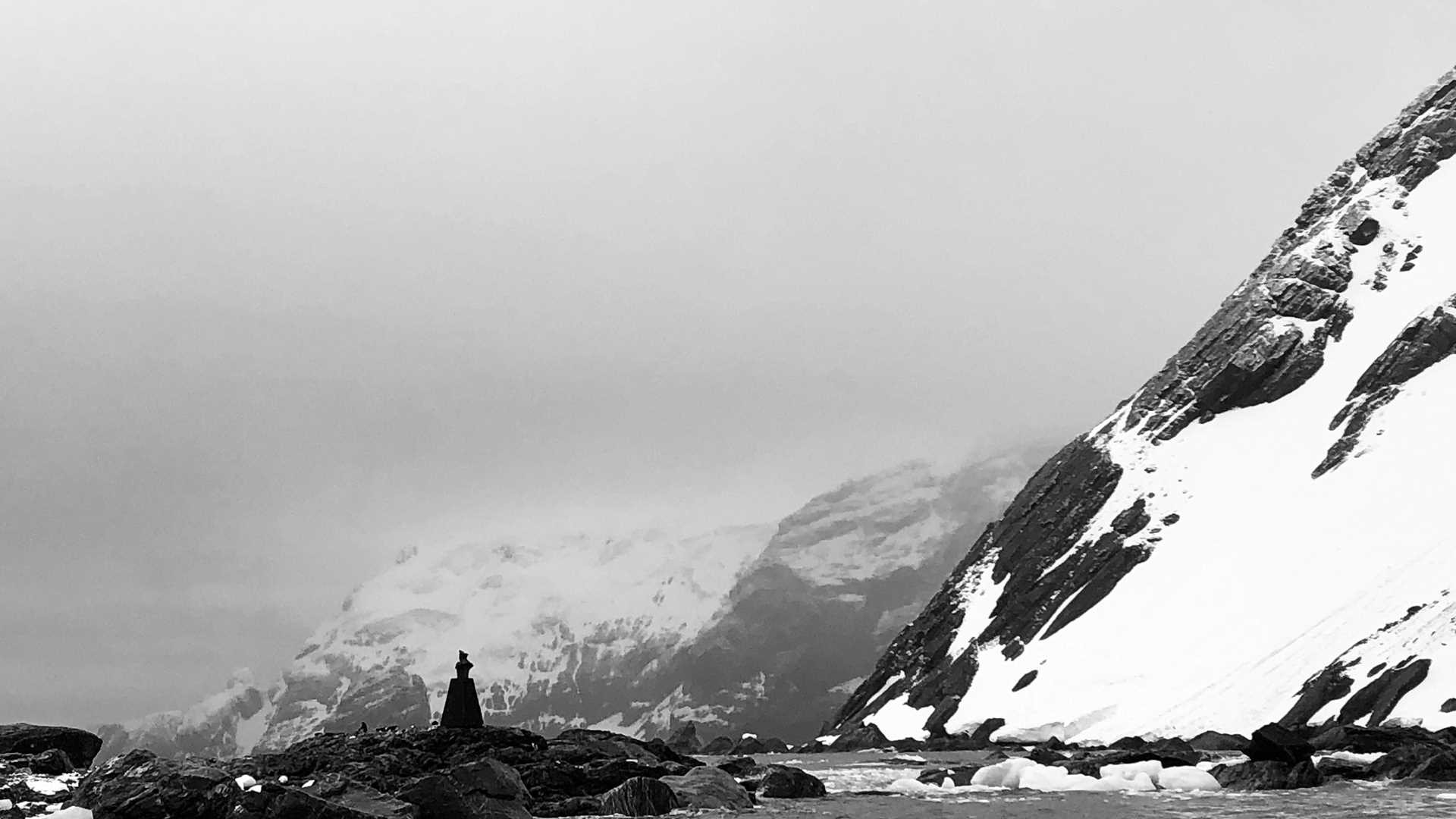 The stark, snow-covered mountains encased an impressive glacier, giving birth to cold gusts of wind. To spend one morning here with dappled sunshine was incomparable to the time that was spent in this cruel location. The tiny patch of rocks where the men made shelter for themselves was now home to a colony of chinstrap penguins, which we both heard and smelled as we approached the rookery. We watched teams of chinnies launching themselves into the surf and other groups swimming back to land to trade places with their penguin partner. The Furness Flacier glimmered in the sun and occasionally calved into the sea. Swarms of pintado petrels bathed themselves in a frenzy of activity, with a few southern fulmars sprinkled in the mix.