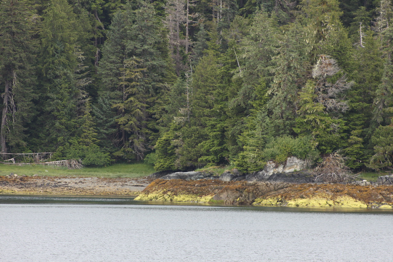 Today we anchored in Kelp Bay for some outside activities on and around Pond Island. This bay has many islets which host perfect habitats for harbor seals- a great chance to step into a kayak and see the wildlife up close. Coordinating this site at a low tide allowed for kayakers to see creatures that usually reside below the water's surface. Others got their blood pumping by going on a series of hikes through the island, tramping through bog muskegs and past beaver dams.