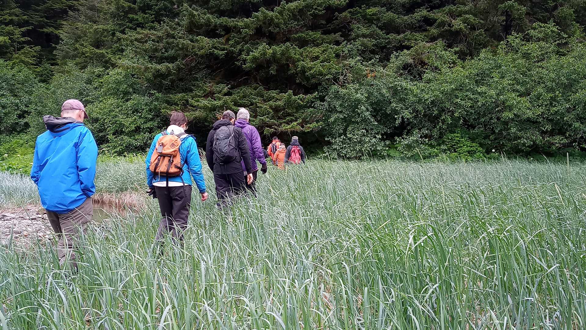 We stopped to smell the chocolate lily, which has a very strong scent to attract flies for pollination. We also learned about their rice roots, which are edible and fibrous. Some guests enjoyed Zodiac cruises up the bay and observed leather sea stars, lion’s mane jellies, and sea otters.