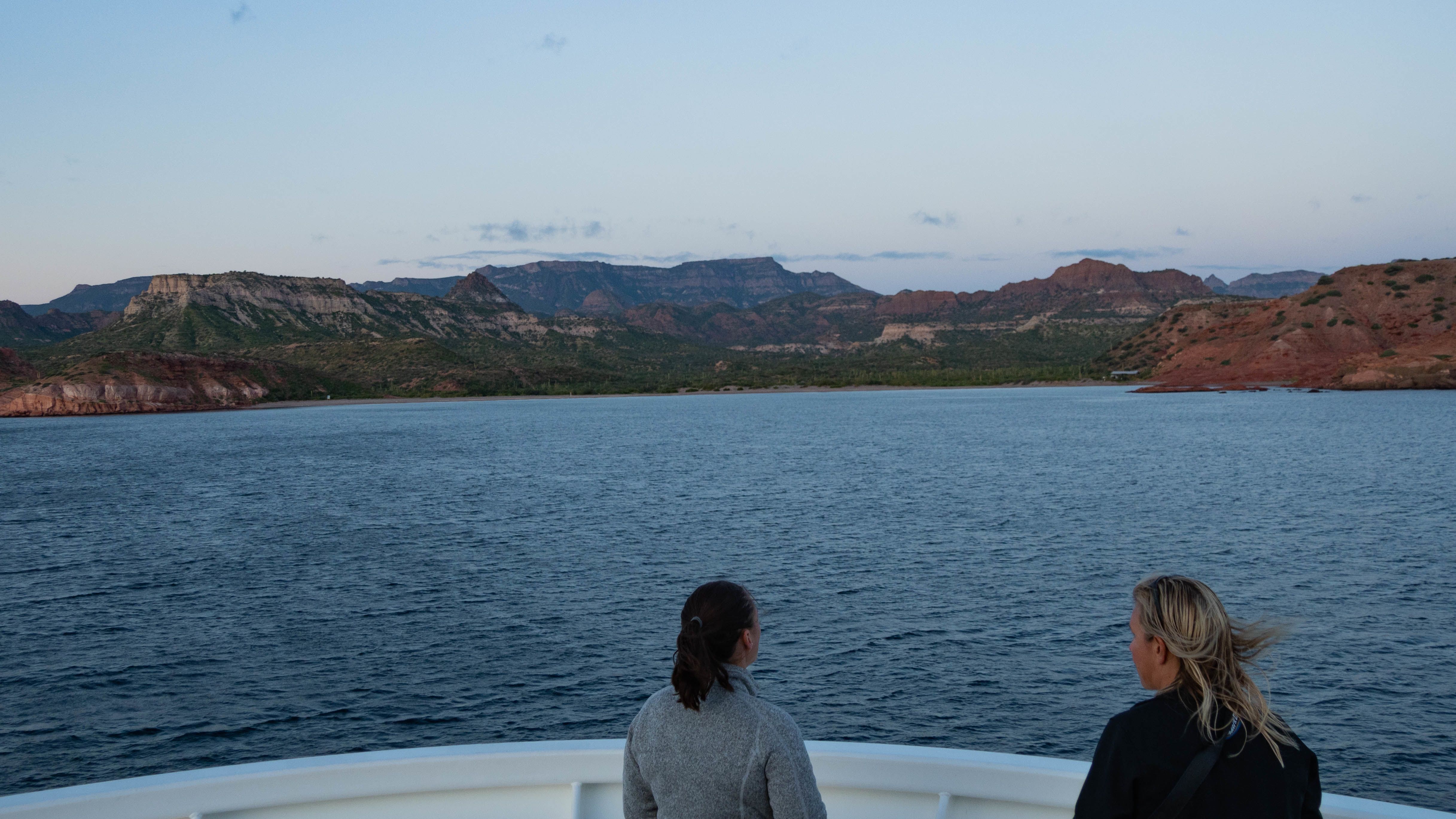 We woke up early this morning to take advantage of the calm weather. We set out to explore Pourquoi-Pas Island, named after Charcot’s second Antarctic expedition ship. We hiked up the island’s moraine to gain lovely views of the bay. We also enjoyed a leisurely walk along the shore. Along the way, we spotted a few more Adelie penguins, skuas with their chicks, kelp gulls, a Weddell seal and a crabeater seal swimming through the water. In the afternoon, we explored a brand-new area on Horseshoe Island, pioneering a new hike up one side and down the other into Gaul Cove. We enjoyed beautiful views of the cove and glacier. The hike was full of beautiful pink granite and stunning geological views all around.