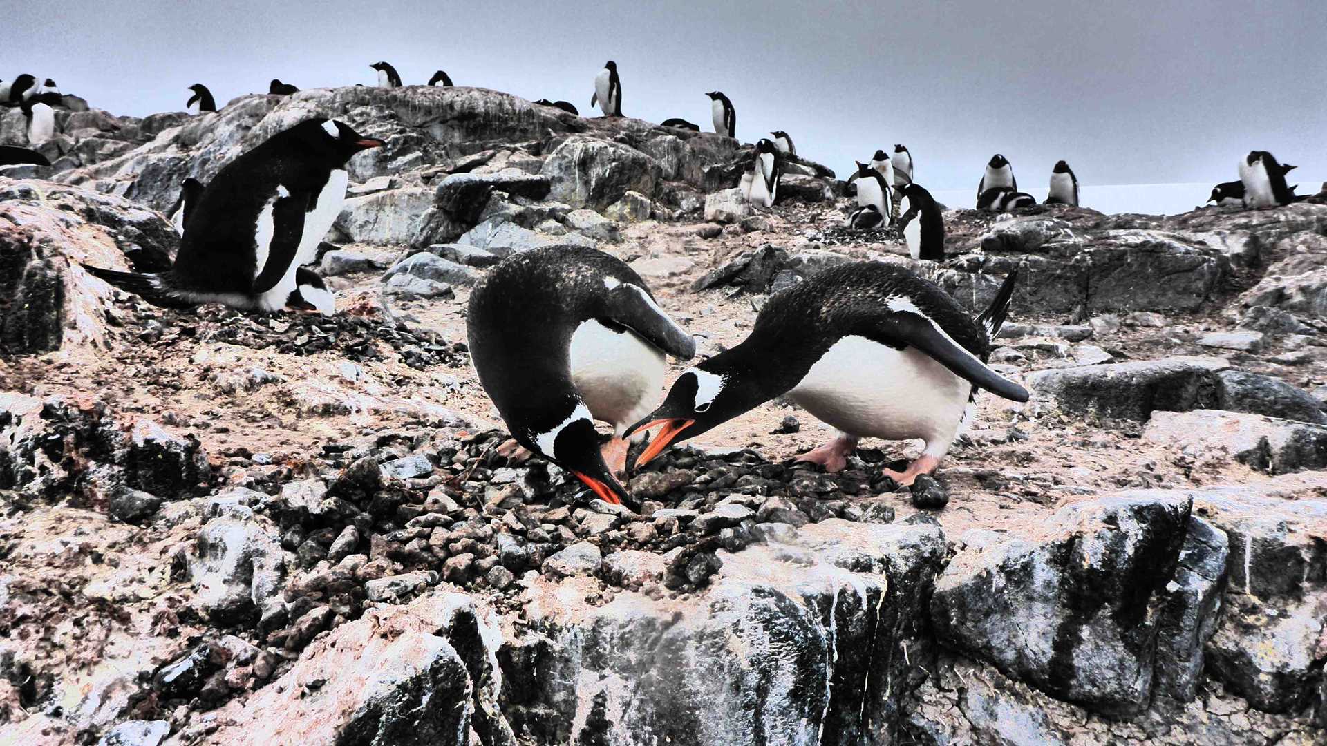 This morning, our last in Antarctica proper, we woke at Port Lockroy, the home of British Base A. We flocked to its gift shop and post office, collecting knickknacks and mailing postcards for loved ones around the world, then studied the artifacts of its museum—a wondrous time capsule of life at an incredibly remote Antarctic research outpost in the 1950s. Apart from a little rust and dust, the tools, rations, books, and magazines all looked just as they had when the men communicated with the outside world via Morse code. An open cookbook presented a recipe for broiled penguin breast. The men’s quarters, complete with hand paintings of beautiful lady movie stars of the era covering the walls, had rumpled sheets with boots and clothes beside them. One half expected to find a hand-rolled cigarette still smoldering in the ashtray.