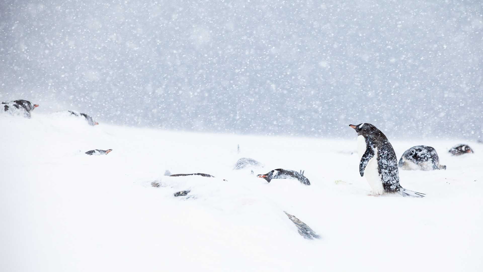 This island and nearby Jougla Point host roughly 1,600 breeding pairs of Gentoo penguins. The penguins build stony nests on exposed rocks, an important process complicated by the season’s heavy snowfall. Gentoo penguins are more adaptable than other penguin species in Antarctica, but the heavy layers of snow that block access to nesting sites is a challenge even for them.