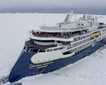 Marguerite Bay is an extensive bay on the west side of the Antarctic Peninsula, which is bound on the north by Adelaide Island and on the south by Wordie Ice Shelf, George VI Sound, and Alexander Island. During the afternoon, we explored the inside of this bay looking for fast ice for a possible Ice walk. We sailed passed Nemo Cove, Nautilus Head, and Ridge Island. Right after lunch, the great news came over the PA system: “We found the perfect spot!” Approaching the ice, we could already sea dozens of seals on this vast frozen sea water fastened to the shore, hence “fast ice.” The National Geographic Resolution approached the ice in the most gentle and smooth way—and without even feeling a bump, there we were, surrounded by ice. It was unbelievable. Our penguin doors at the bow of the ship opened, and we got to explore this immense ice landscape surrounded by high peaks of mountains and magnificent glaciers.