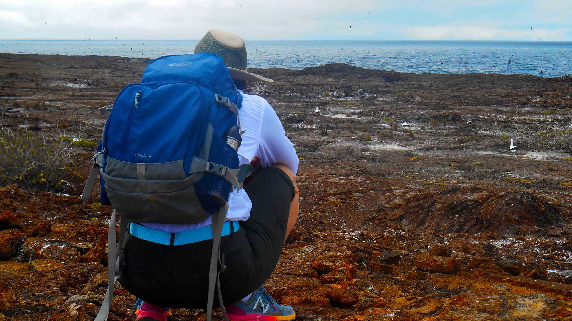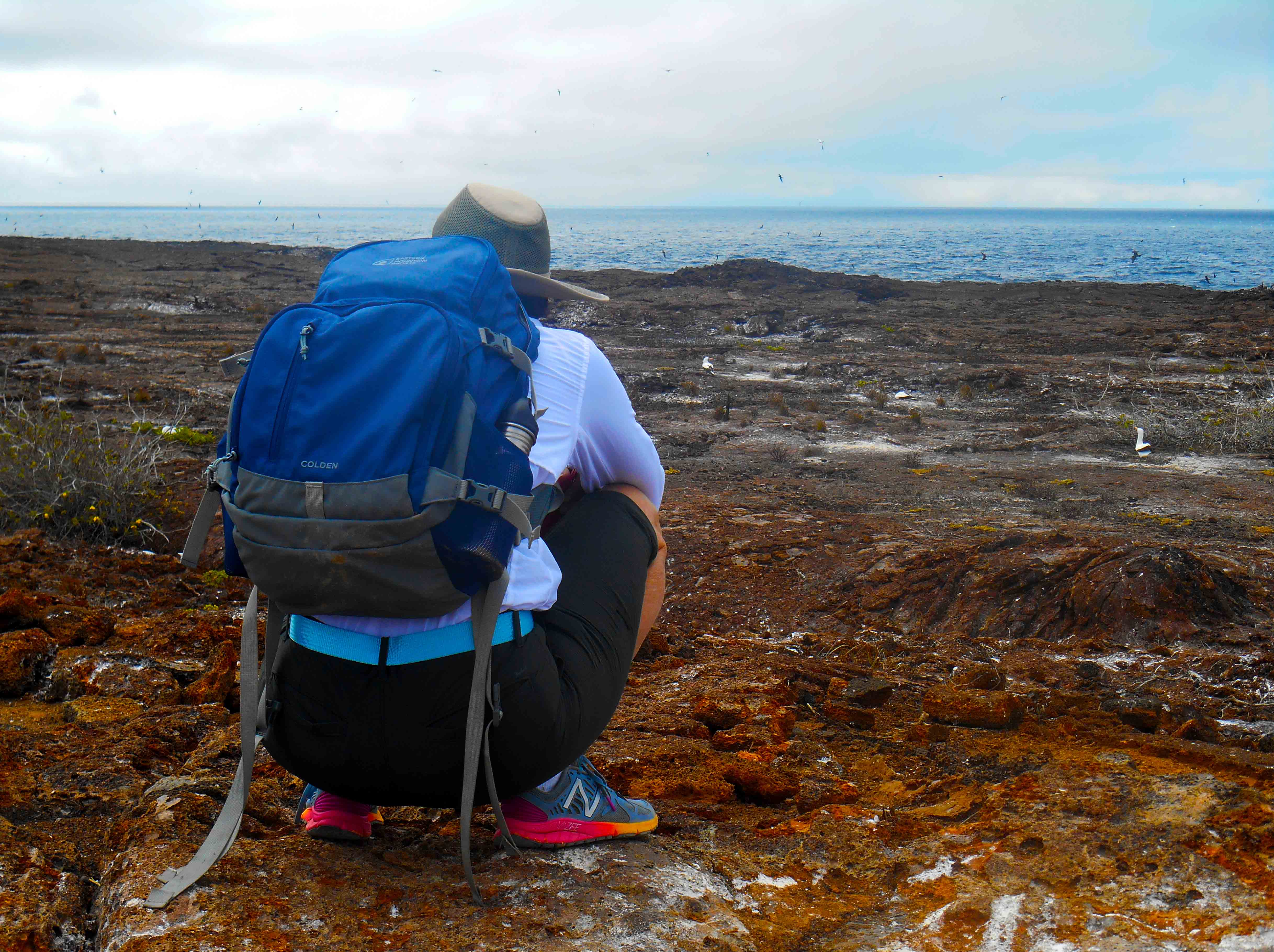 The second place we visited today was Prince Philips steps, where we had the chance to observe the endemic short-eared owl hunting for its prey, the Elliot storm petrel. As we walked along this trail, we were perpetually surrounded by red-footed boobies, Nazca boobies, Galapagos doves, yellow-crowned night herons, large ground finches, sharp beak finches and the gorgeous red-billed tropical bird. This created the perfect conditions for us to stop on the main cliff of the trail, and to put our cameras down to enjoy a time of silence. As we took in silence, our senses awakened and we all felt deeply connected to this enchanted ecosystem. Taking into account that there is no one else present on this site, and also that the birds are utterly unconcerned with our presence, our last adventure of the week on Genovesa was simply magical.