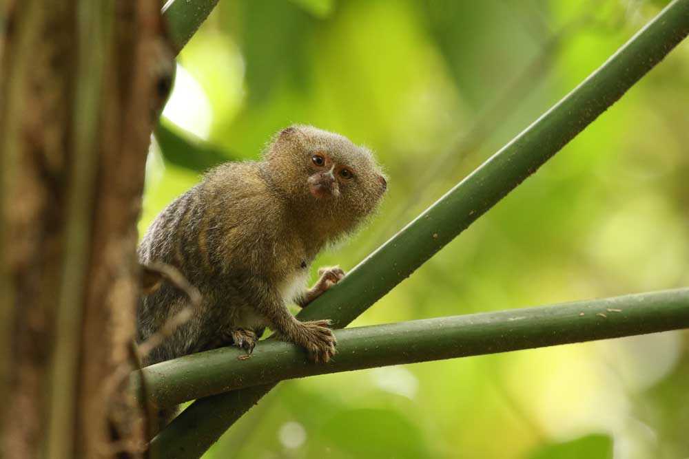After the skiff ride, we had the opportunity to visit a local shaman, who explained about the properties of all the medicinal plants she was using to cure the local people from common illnesses.  While listening to the explanation of the shaman, a pigmy marmoset was spotted climbing down a nearby tree, fortunately allowing us to photograph it.