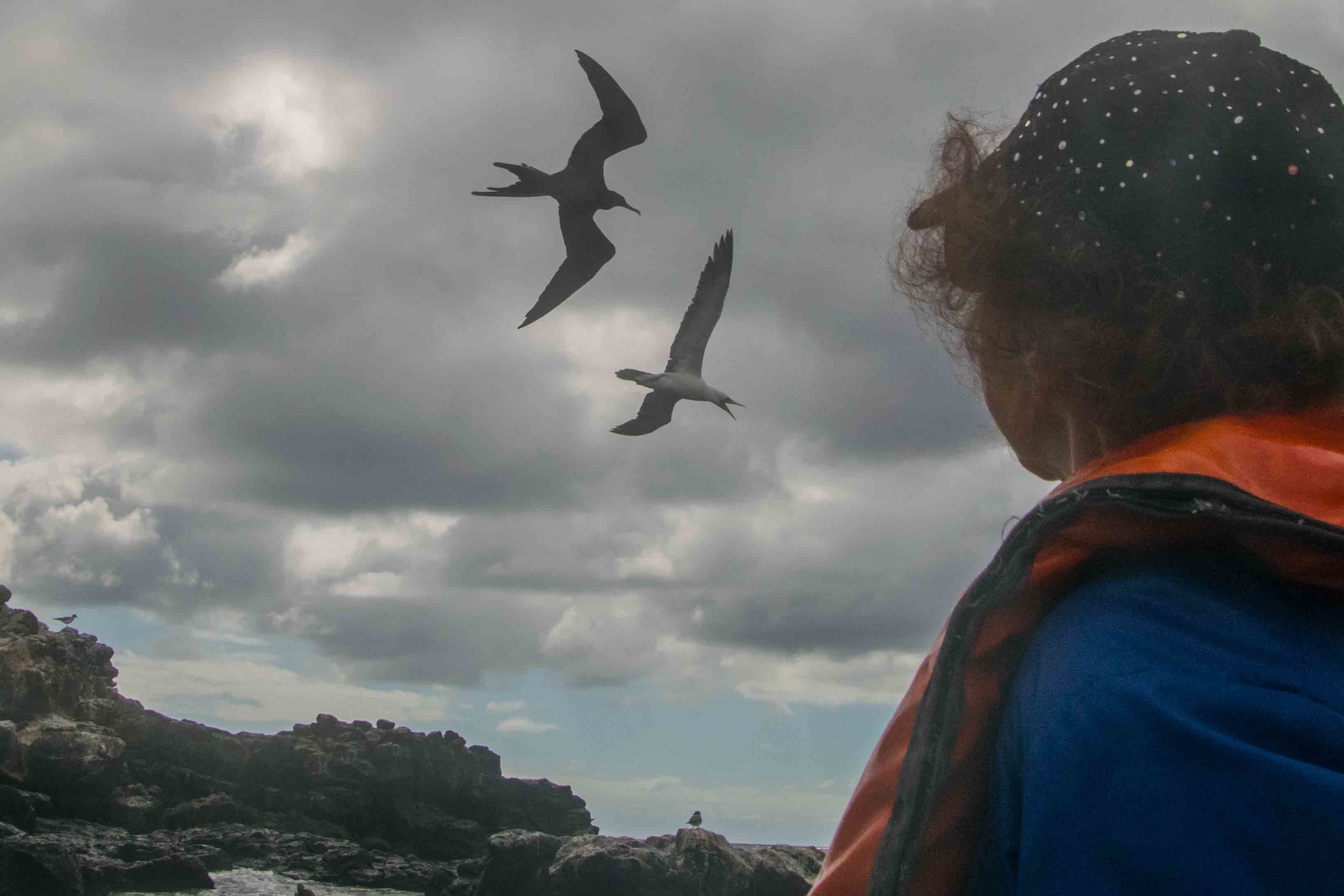 Today we spent the last day of our expedition at the island of Genovesa. It took us several hours of navigation to reach the island, which is located in the northern hemisphere and is home for more than a million birds! In the morning, we went out to explore Darwin Bay. We had an easy landing on a white sand beach covered by pieces of white coral. No matter where we looked, we spotted birds everywhere. Indeed, Genovesa Island holds the largest colony of red-footed boobies on Earth. More than 200,000 red-footed boobies are found here. These birds are so beautiful. They have a gorgeous blue beak with a pink mask and a black outline beneath their beaks. Red-footed boobies nest on bushes and trees. Their call is very distinctive and loud, and males and females are alike. During our easy stroll at Darwin’s Bay, our guests were lucky as they witnessed a swallow-tailed gull emerge from its shell. It was a miracle and a wonder of nature. I was fortunate to go kayaking with our guests inside of the protected caldera of Genovesa Island, and we enjoyed our last opportunity for deep water snorkeling. The waters are warmer here, and there are many colorful fish to observe. In the afternoon, we went to Prince Phillip’s Steps. After climbing the uneven steps, we reached the plateau and went to look for the elusive short-eared owl. We were very lucky, as we spotted two owls right by the trail. This is the best time of year for the owls. The storm petrels are nesting, and there is plenty of food for the owls. We went back onboard with feelings of amazement and gratitude. Galapagos is like the Garden of Eden. Humans encounter nature, and animals are not afraid of us. Those are the gifts that we keep for the rest of our lives!