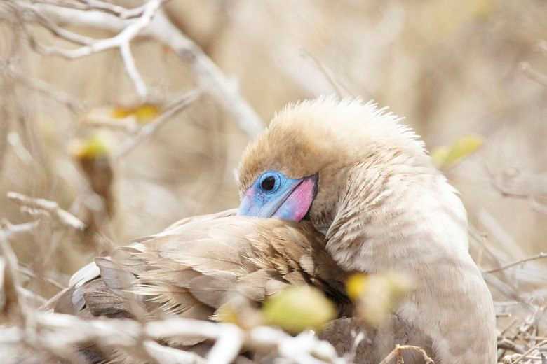 We anchored right in front of majestic tuff cones in the protected cove known as Punta Pitt. After a wet landing, we hiked a steep trail in search of some endemic species, such as the San Cristobal lava lizard or the San Cristobal mockingbird but were pleasantly surprised to find blue-footed boobies nesting along our trail. One nest had a couple of healthy white fussy babies being fed by a parent. As we continued, a San Cristobal mockingbird came very close and explored our surrounding area. We also spotted magnificent frigate birds scouting for any potential catch – frigates are known to steal food from booby nests. At the end of our trail, we found several red-footed boobies nesting on the endemic succulents found here. This is the only species of boobies in the Galapagos that nest on trees. After the hike we returned to our landing beach and suited up for some great snorkeling and swimming. We had a couple sea lions and a large variety of fish as companions! Some of us chose to go deep-water snorkeling in the protected side of Pitt Islet. Both groups had an incredible time in the water.