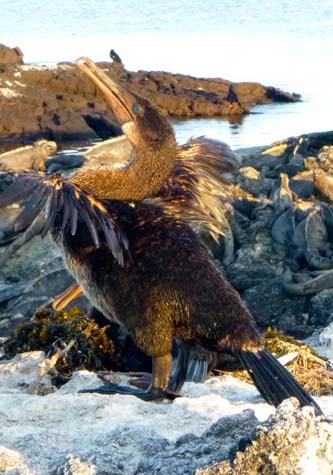 In the afternoon, we visited the youngest island in the Galápagos, Fernandina Island. The best preserved island in the archipelago, it is a favorite with naturalists. When we approached the visitors’ site at Punta Espinoza, there did not seem to be many signs of life. But as we got closer, we saw so many marine iguanas that we felt the place should be called Iguana Land. Fernandina has the highest concentration of iguanas of any visitors’ site in the Galápagos.