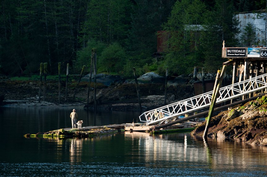 We pulled up to the docks of Queen Charlotte City this morning under high clouds and no wind. At breakfast, we met our local cultural interpreter, Elsie Stewart-Burton, and our local logistics coordinator, Sue Perin, who will both be joining us during our time on Haida Gwaii. They accompanied us on the short bus journey to the Haida Heritage Centre, where we were fortunate to have two remarkable, young Haida guides, Raven and Alex. Raven interpreted the totem poles in- and outside the beautiful building and told us some very entertaining Haida legends. Alex and Elsie shared information about the process of weaving and the ceremonial uses of today’s button blankets. I was very moved by Alex’s story of being presented with her blanket by six of her aunties at her high school graduation ceremony and how that meant more to her than the cap and gown.