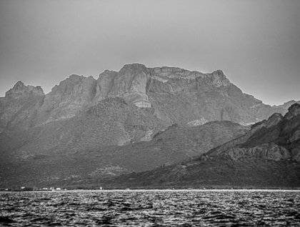 Windy conditions precluded the possibility of searching for whale sharks in La Paz Bay.  However, after the mandatory abandon ship drill and meeting Captain Kay and a few of the officers, we set sail for the south end of Isla Espiritu Santo.  Along the way, we scanned the seas for marine creatures, but not too many of our fellow guests felt like venturing out.