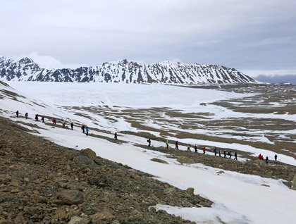 It was very nice to end the last hike on land with calm, warm weather, and a great view over Bellsund area with National Geographic Explorer in the foreground.
