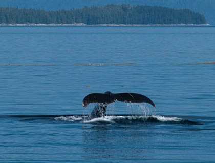 Making our way north through Chatham Strait we had brief glances at some Dall’s Porpoises. As Steve MacLean began his presentation “Forest Ecology of Southeast Alaska” we got the word. Humpback whale! Out to the decks we went to watch one, then two then three of these huge animals as they came to the surface to breathe and then showed their flukes as they dove for more food. After this wonderful show, Steve resumed his informative presentation.