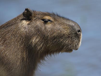 We divided into groups and while some went to the Charqueada São João, a cattle ranch with all the flavor of the traditional gaucho culture, other went to the TAIM wetlands reserve. The TAIM reserve is a wonderful place that protects a rich environment of grassy, savanna-like pampa, wetlands and coastal lagoons. Wildlife abounds there and from the very beginning of our hike we spotted all kinds and sizes of birds, some familiar like the Vermillion flycatcher and the snowy egret, but the most new to many of us. Everywhere we looked we discovered some beautiful bird, like the field flicker, the guira cuckoo, the cocoi heron, or the fork-tailed flycatcher. Rufous horneros sang near their balloon-like nests made of mud, Brazilian ducks swam quietly among the floating vegetation, long-winged harriers and snail kites patrolled the wetlands flying at low altitude looking for small prey. One of the most conspicuous members of the avifauna here, without a doubt, is the southern screamer; it’s a large turkey-sized bird and a very noisy one. Its calls add a lively note to the landscape of the TAIM. However, it was a mammal that captivates everyone’s hearts today, the capybara. Even though the capybara is the largest rodent in the world at almost 100 lb, its peaceful manners and interesting looks made it a favorite and we all enjoyed watching it. Big groups were scattered all over the place, most resting in their sandy beds and some swimming or grazing. A few territorial males chased potential competitors away. We also got the chance to watch a broad-nosed caiman, a 6-7 ft long crocodilian that coexists peacefully with the capybaras but that declares war to the abundant snails, frogs, and fish.