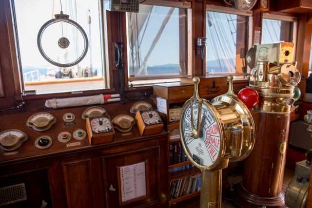 At 10:30 the sailors went aloft and sails were reefed. Our knowledgeable Greek guides Kriton and Eleni gave an introduction to the Greek language and taught all of us that our pronunciation of fraternity and sorority abbreviations is likely wrong! Who knew that the sounds of ancient and Modern Greek were so different? Erika completed her composition of the group slide show for all to see.