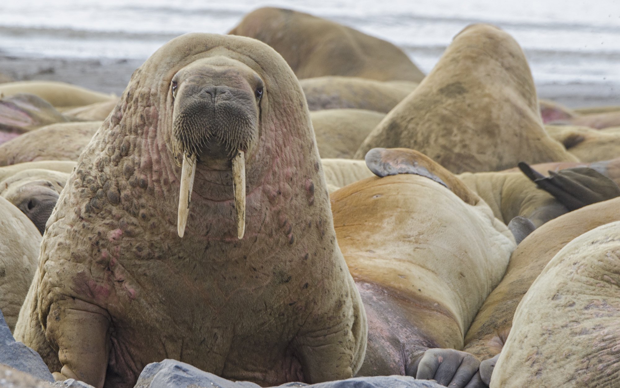 The sight of these huge, tusked mammals all bunched together is wonderful. Every now and then they moved about and in the waters close to the shore a number of animals sparred with each other. It was a real highlight for us all.