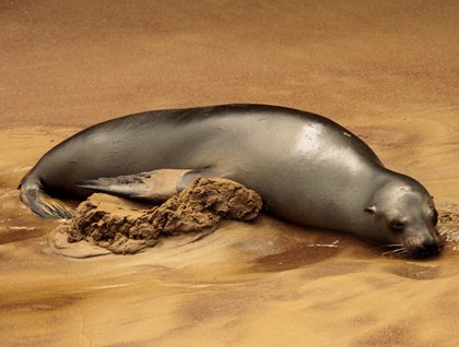 After the walk and Zodiac ride we had the chance to go for a good swim in the nice warm waters on Punta Pitt. We were accompanied by several Galapagos sea lions that were tossing and turning on the sparkling greenish sand while others join us swimming.