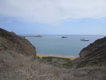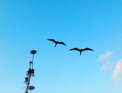 Once the snorkelers came back on board National Geographic Endeavour, we enjoyed a beautiful sunny afternoon with drinks on the foredeck of the ship while circumnavigating Kicker Rock. At dinner time we arrived to our final anchorage in front of the town of Puerto Baquerizo Moreno, capital of the Galápagos Islands which are part of the Republic of Ecuador.