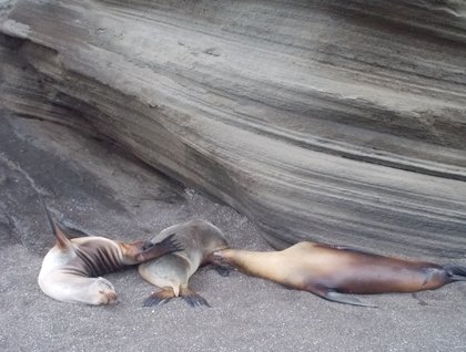 After the walk, we relaxed on a green sandy beach within view of a Galapagos sea lion colony. The crystal green water was refreshing and our guests had the opportunity to cool off, accompanied by playful sea lions and a watchful alpha male.