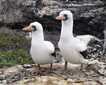 Red-footed boobies, however, were the true goal of many this morning.  We found them perched in bushes along the cliff edges. By both Zodiac and foot, folks got a look at this bird which is modest from a distance, but dramatic if seen at closer range.  It has a sky-blue bill with pink edging, café-au-lait brown feathers and red legs and feet.  There were even some chicks were in the area!
