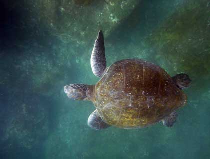 Just before lunch, the National Geographic Islander started navigation heading west to Kicker Rock or “Leon Dormido” where we started our last activities, swimming around an impressive tuff cone. We observed many green sea turtles, colorful fish, rays and different species of sharks during the snorkeling.  Galapagos sharks, white and black tipped reef sharks delighted our guests.  Afterwards we all returned to the ship and we circumnavigated Kicker-Rock, observing the gigantic formation.  From the deck we watched an incredible sunset while in the air magnificent frigate birds were our last companion as we ended this incredible week in the Galapagos.