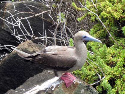 Today we landed on a green olivine beach. The volcanic scenery that we observed during our intense hike was spectacular. The peaks of tuff cones high in the sky make this site very different from what we have already observed. Punta Pitt also has impressive scenery from up above – here we saw red footed boobies and blue footed boobies. All our senses became aware as we listened to our surroundings. Walking along the narrow trail that lead to the top, we observed mockingbirds, finches and some yellow warblers. On the top of the hill the view was impressive while along the trail blue footed boobies captivated our attention with their tameness and beauty. One of the best attractions was when we observed two lava lizards fighting and biting each other. It was very impressive to observe how aggressive they can be, trying to bite each other’s tails and legs.
