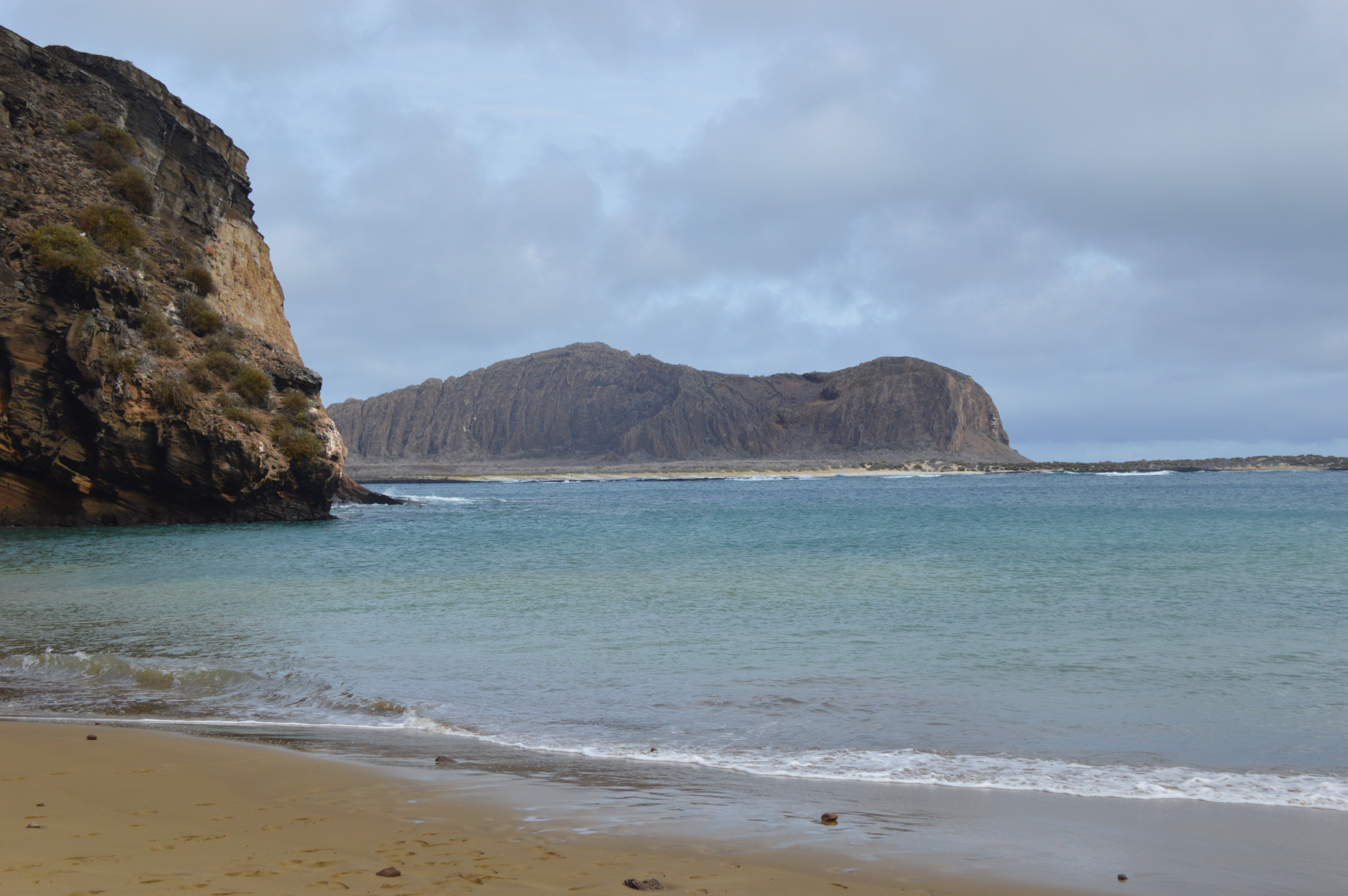 Chatham mockingbirds, small ground finches, and mangrove warblers were the perfect combination for a marvelous land bird paradise. Once we reached the highest point of the trail, a marvelous view of the landscape decorated with giant tuff cones impressed upon us how superb Mother Nature could be. Frigate birds and nesting red-footed boobies along the cliff side made the perfect addition to the beautiful scenery.