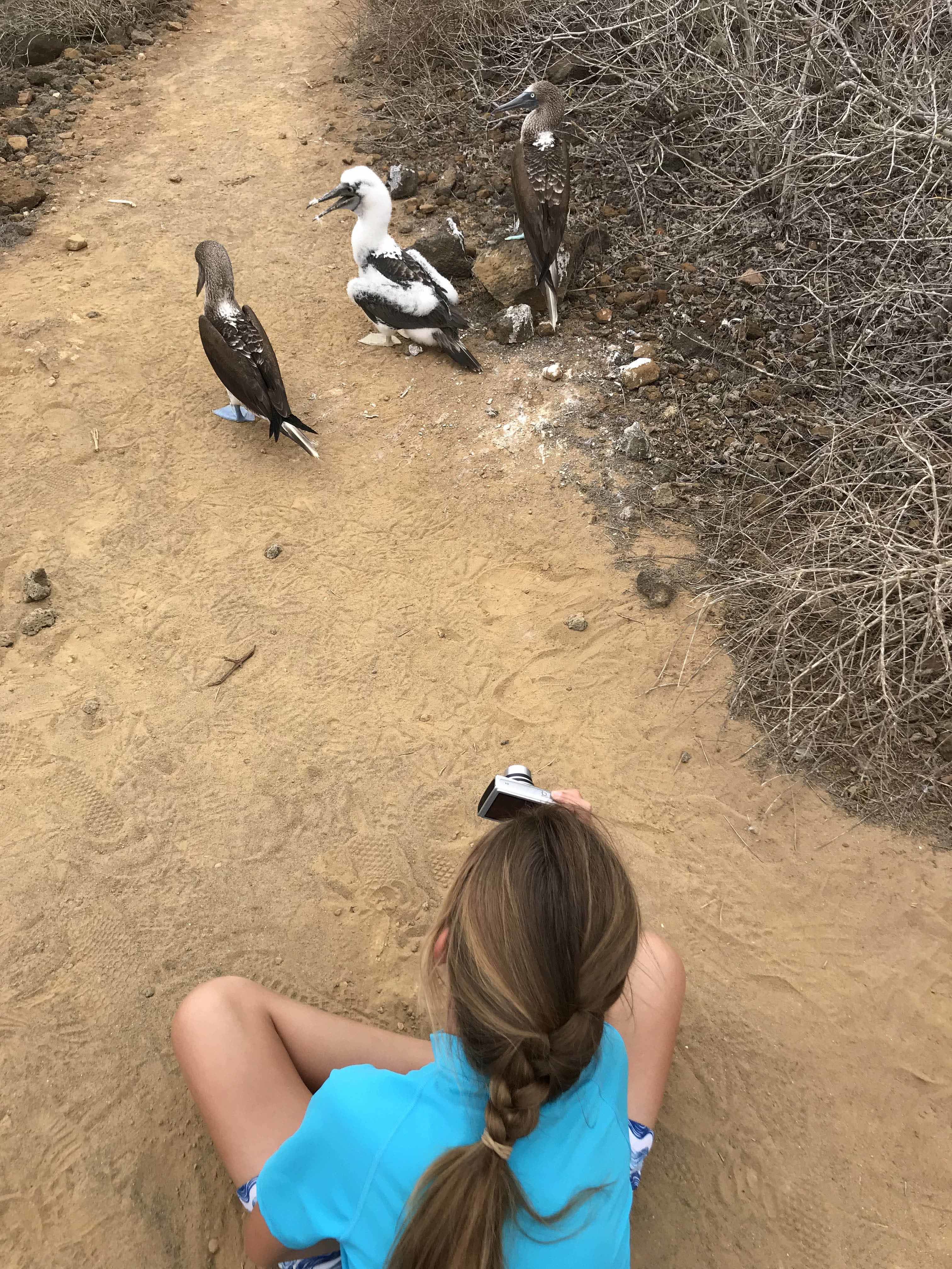 In the afternoon following lunch, the global explorer kids worked happily with our wellness specialist Estefania and learned to make colorful recycled paper “pearl” beads from old brochures. We went out for a final visit at Cerro Brujo, or “wizard hill” to swim, stroll, and reminisce on a lovely white sand beach. We had this beautiful visitor site all to ourselves and thoroughly enjoyed the golden peacefulness of these magical islands.