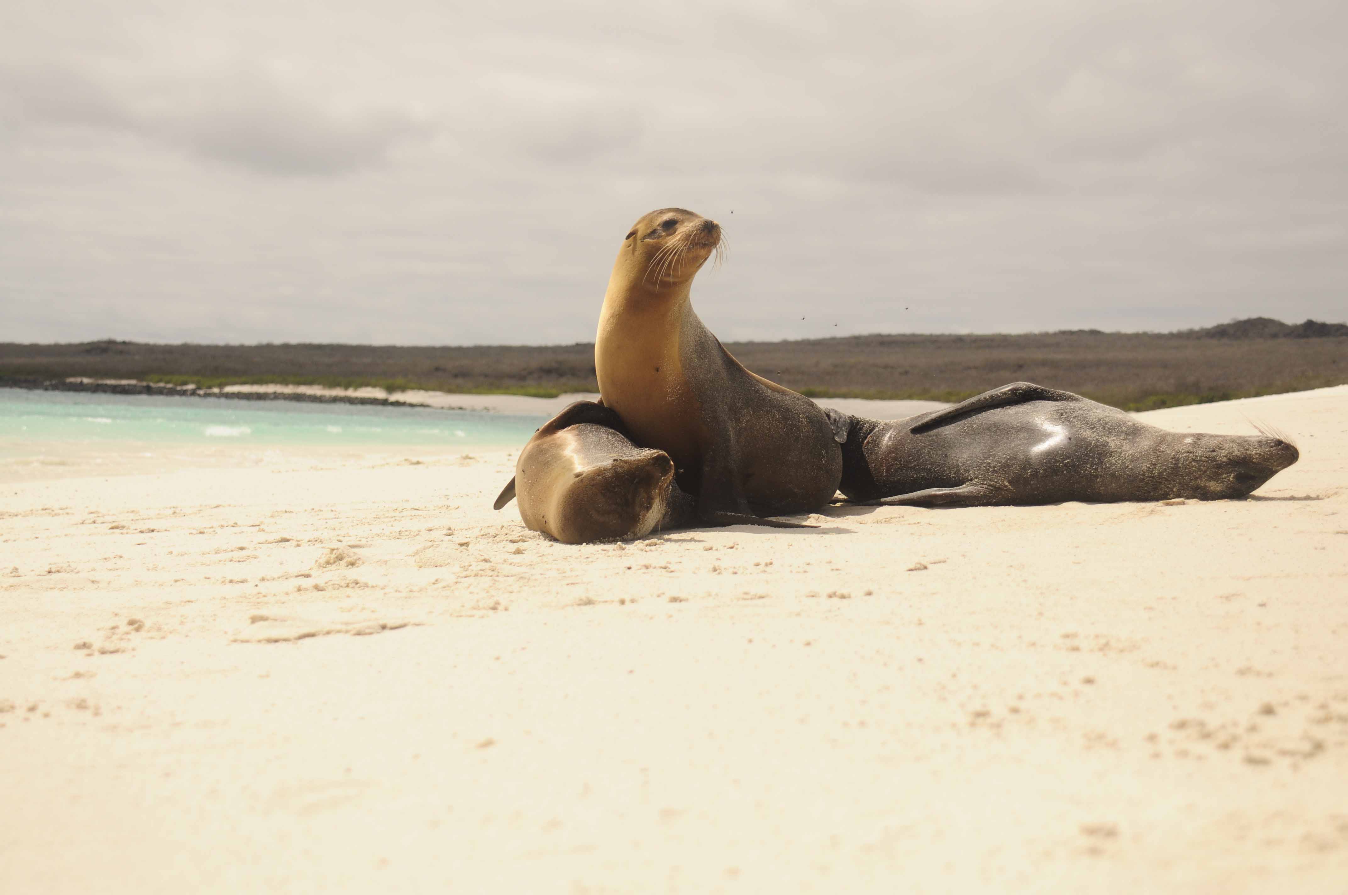 Punta Pitt is also home to a small colony of sea lions that played with us on the beach. There were more sea lion encounters in the afternoon at Cerro Brujo, a beautiful white-sand beach with crystal clear water, where we encountered sea lions nursing, sleeping, and resting. These are the moments that make time stop and have you wondering what the world would be like if animals and humans interacted the way they did here in the Galapagos!