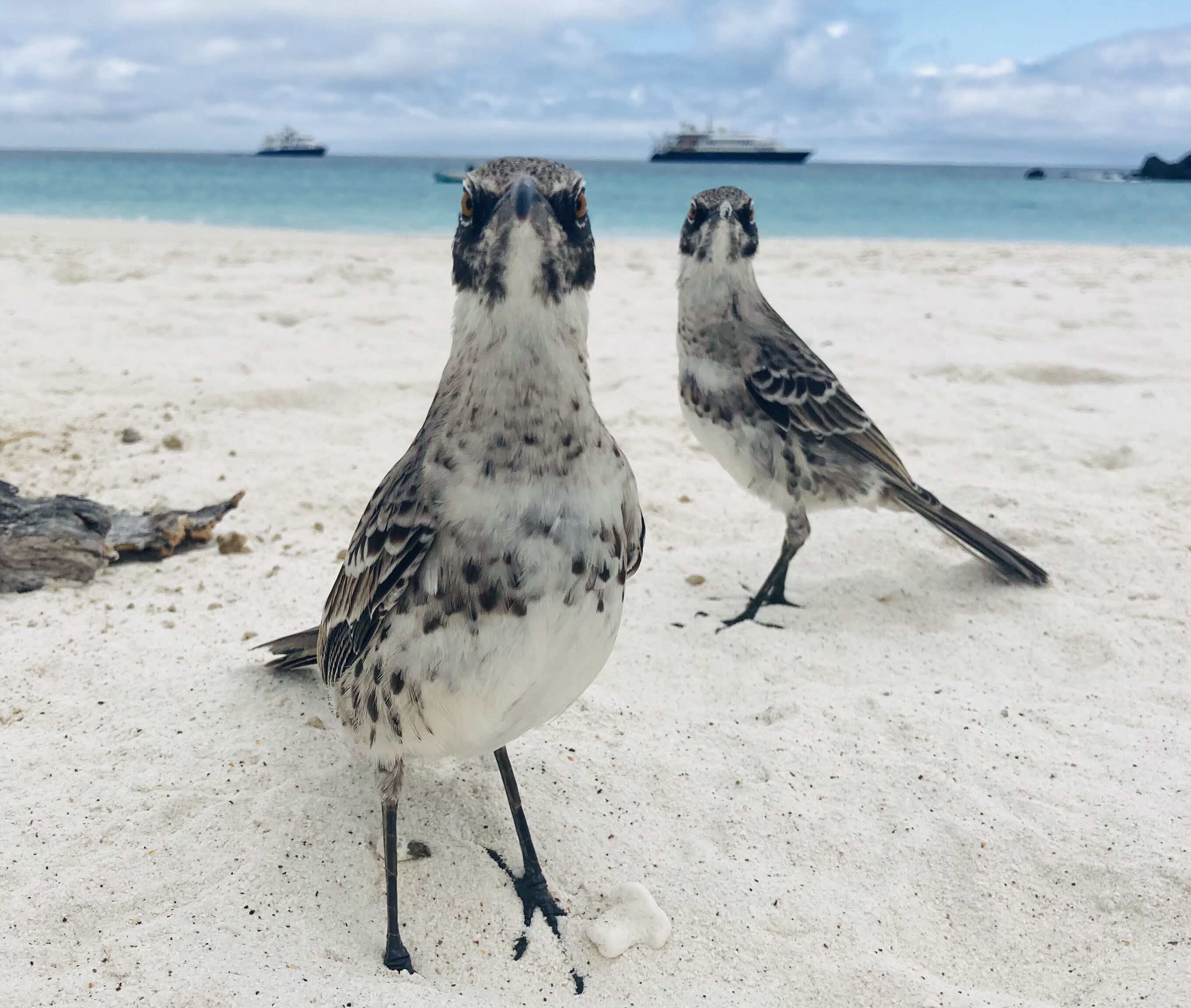 Today we visited the island of San Cristobal. We started our day with a hike at Punta Pitt, where we walked uphill along a beautiful landscape made of tuff. Here we observed the last of the three species of boobies that we can find in the Galapagos, the red-footed booby. To our surprise, we also found nesting blue-footed boobies and chicks. After a delicious lunch, we visited Cerro Brujo, one of the most beautiful beaches found on these islands. This beach was a great place to relax on the last full day of our trip. We spent time walking around and observing the sea lions and a few seabirds feeding along the shore. We ended our day by navigating around Kicker Rock, a tuff cone in the middle of the ocean, just a few miles off the coast of San Cristobal.