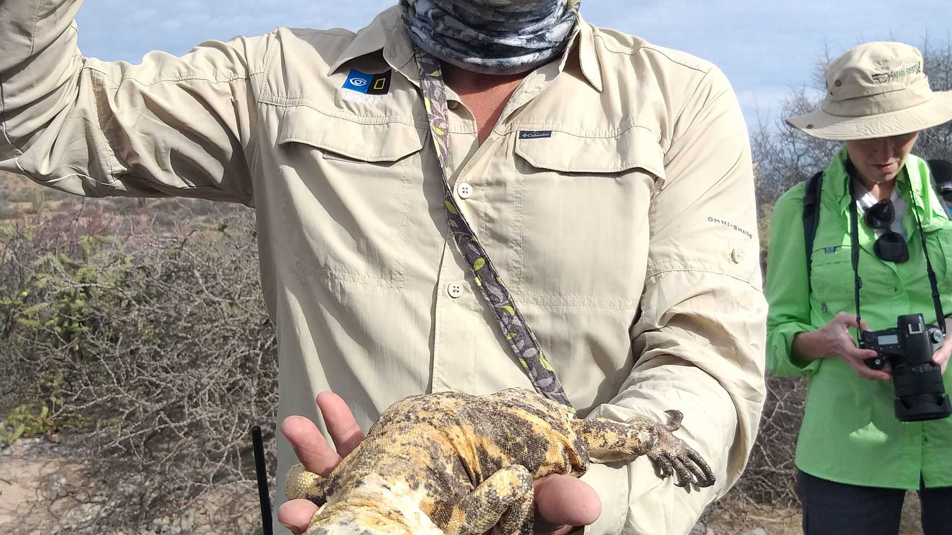 This morning we explored San Esteban, a magnificent island in the Midriff region of the Gulf of California. A wide, deep and wonderful arroyo crosses the island from south to north. The island is home to two of the most remarkable lizard species: the giant chuckwalla and the spiny-tailed iguana, both endemic. Guests and naturalists discovered amazing plants growing in the arroyo, such as jojoba, ragweed and cacti, including varieties like cardon, galloping and organ pipe. One party found an adult chuckwalla. Our guests took many photographs of the somewhat skinny individual. This region is prone to periodical long-lasting droughts, which can diminish a usually abundant food supply. We also found a dead spiny-tailed iguana, probably a meal for a red-tailed hawk or some other raptor. By noon, we left San Esteban and navigated southbound to San Pedro Martir, another impressive island.