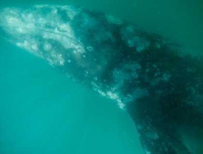 Our goal for the day was to see gray whales, and gray whales we saw—but not before National Geoographic Sea Bird’s intrepid guests showed their dedication to the spirit of exploration by taking a mile-long ride over unsettled seas to meet our local Panguero captains inside the calm waters of the bay. Panga is the term for the local style of fiberglass fishing boats, and Panguero’s are the people who drive them. Our local Panguero guides told us that there are currently 150 to 200 gray whales in the bay getting ready for their migration north to the Bering, Chukchi, and Beaufort Seas. During the mornings session in the lagoon we were treated to spectacular sightings of spy-hopping, head-slapping, and fluking behavior, along with some friendly behavior of whales coming to visit within arm’s reach of the boat.