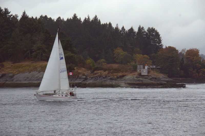 Today we bade farewell to British Columbia and the Inside Passage. We awoke to a morning of fog, rain, and a noticeable increase in ship traffic and radio chatter of ship captains announcing their intention of passage in the narrow lanes. An addition to our morning traffic was a steady stream of sailboats, making good time toward their destinations with main and headsails full of wind.