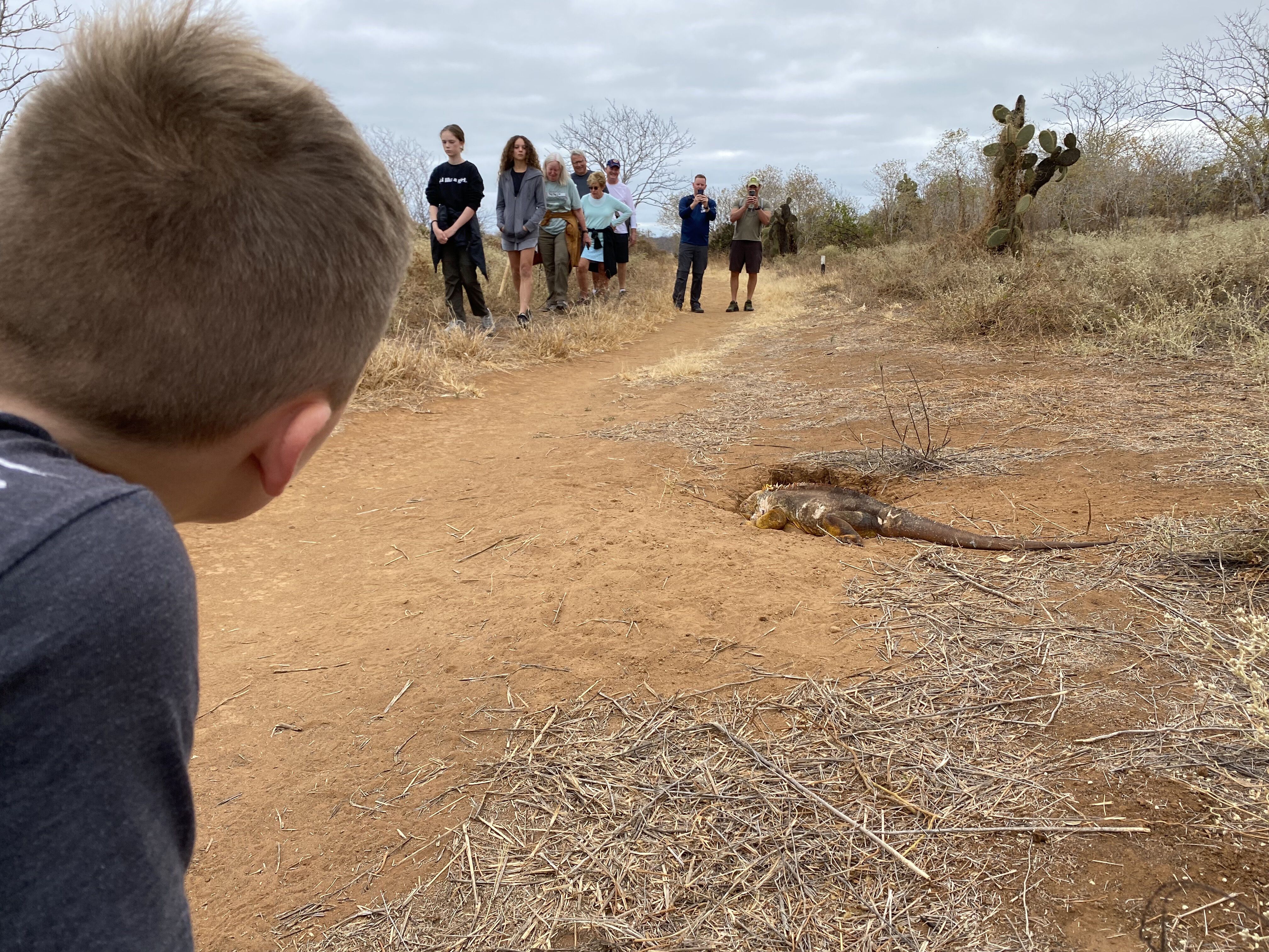 We started our day with a morning walk along Dragon Hill to look for land iguanas. As soon as we set foot on this visitor’s site, it was almost impossible to believe that we were visiting the same island. Yesterday, we observed cars, streets, and people, but today was different. That is the beauty of the Galapagos Islands: 97% of the total land mass of the Galapagos is protected, leaving only 3% for humans. This is definitely a place worth conserving.