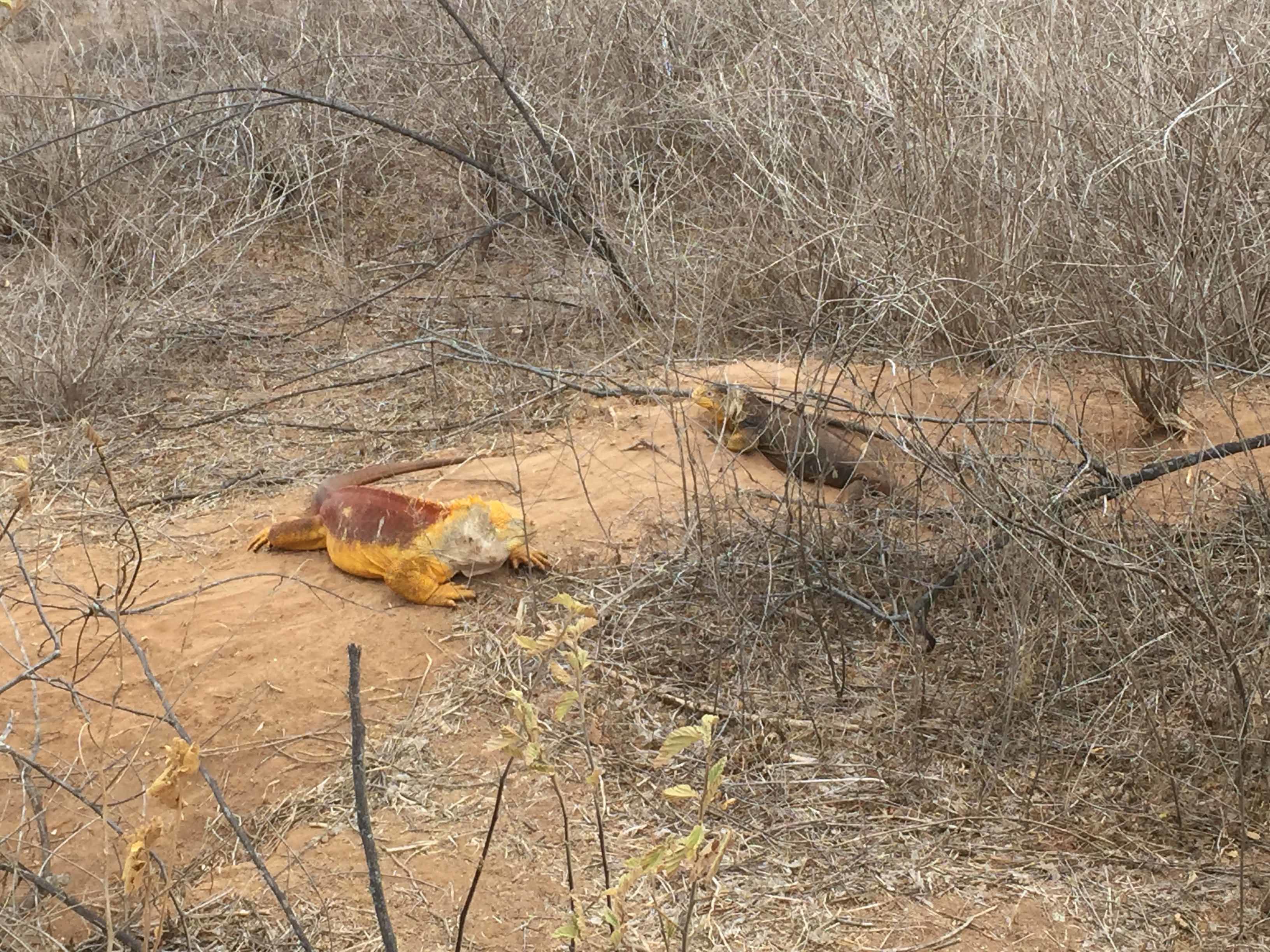 Our first sighting of the land iguana was quite far away from the trail, but as we progressed, the land iguanas sat closer and closer to the trail. We got up close to a mating pair, the male exhibiting beautiful bright yellow coloration. Guests learned about the evolutionary history of the land and marine iguanas and the ways in which they have evolved to coexist with one another. Habitat partitioning is an important behavior that allows these species to avoid direct competition, which could lead to displacement of one of the two species.