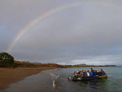 After lunch in a paradisiacal location in the highlands, we explored the luxurious green Galápagos highlands. We observed the giant tortoises in their natural habitat. It was amazing to find many of these reptiles roaming free in the wild. We left the giant tortoise territory behind, covered by the mist, and headed back to town and then to the National Geographic Endeavour. Once on the ship we shared our impressions and adventures with our fellow travelers. We even had a party with lively music played by a local band that came onboard accompanied by beautiful dancing girls who wore typical Ecuadorian dresses. We can hardly wait what new memories our expedition around this magical archipelago will bring tomorrow to our lives.