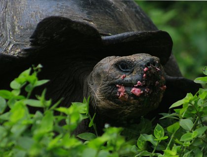 The National Geographic Islander anchored at Academy Bay, a place served as anchorage for cargo ships and fishing boats. After breakfast we headed out for the tortoise breeding center, a place where one can learn about the different projects happening to restore the population of the endemic giant tortoises. We encountered tortoises of different kinds and sizes, some over 500 pounds and others just hatched out of their eggs. Here we had the chance to learn the difference between a dome-shaped tortoise and a saddleback or Galapagos tortoise.
