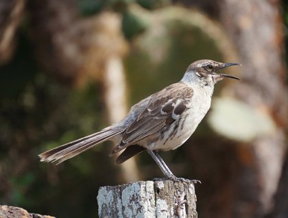 We left the ship after breakfast and went to the giant tortoises breeding center, where we found these reptiles in different corrals. We had the opportunity to see tortoises at various different life stages, from tiny babies, to mid-sized juveniles, and finally to large adults. After taking care of the juveniles for about four years, these tortoises will return to their natural habitat, back to the same island that their parents came from. We also observed lots of land birds, such as Galapagos mockingbirds, Darwin finches and the very colorful yellow warblers. The recent rains have brought a lot of fresh water, and food is abundant for all land birds, therefore mating season is at its highest peak.