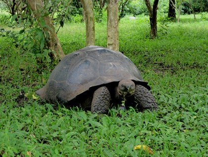 We headed due north from Floreana around midnight, and anchored in Academy Bay off Santa Cruz Island just before dawn. This morning, following a hearty breakfast, we boarded the Zodiacs and motored to shore where we disembarked on the main dock of Puerto Ayora. Buses took us to the entrance of the National Park Service headquarters and Charles Darwin Research Station lands. Following our naturalists – Enrique, Juan Carlos and Antonio – we visited the tortoise breeding center and learned of the brilliant success of this repatriation project. Several species of seriously endangered tortoises have been brought back from the brink of extinction. Most notably, the population of the southeastern-most island was down to 12 adult females and 3 adult males (including the big male we affectionately call “Super Diego,” who was returned to the Galapagos in the mid 70’s from the San Diego Zoo); now there are more than 2000 tortoises wandering in the wild again on Española!