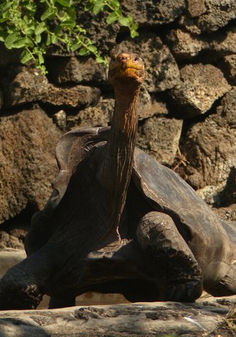 The sun rose in a practically clear sky this morning; a sunny, hot day was in store for us. Today was tortoise day. Although we had gotten a glimpse of two wild tortoises a couple of days ago in Urbina Bay, western Isabela Island, today we focused on the differences between species sizes and shapes, and more important, the “why” of these differences.
