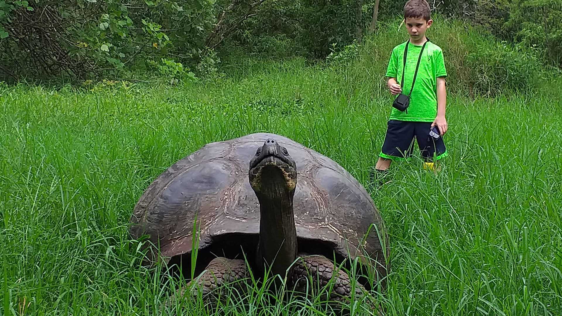 A couple of hours later, we started a hike at another nearby farm, to see giant tortoises in the wild. These beautiful animals were wandering around the forest of this place, and we ended up seeing about twenty or more of them. It was amazing to see them thriving in their natural environment, where they have been living for many thousands of years. At the very end of the outing, we paid a visit to a lava tube, another amazing volcanic feature of Santa Cruz Island.