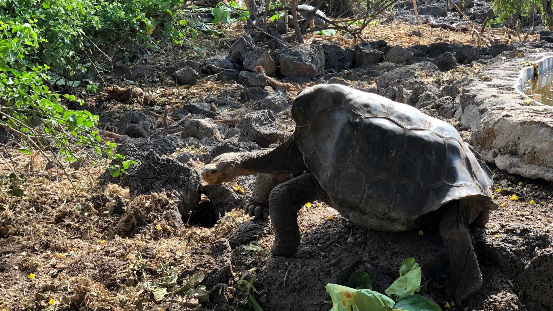 Our afternoon was filled with interesting activities. We visited an open-air school and helped with their ever-growing library by donating books. We walked through a lava tunnel that was nearly a half-mile long and really big! We visited a farm where we learned how coffee is picked, dried, and produced, as well as learning how sugar cane juice, brown sugar, moon shine and syrup is made. We had fun sampling and buying. Later, we counted tortoises as we drove higher, towards the western slopes of Santa Cruz to Rancho Manzanillo. Here we had a bountiful buffet lunch and after had perfect cool weather for a walk among the tortoises.