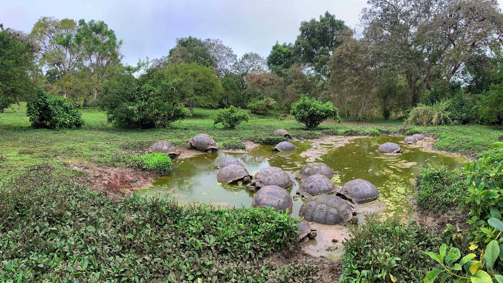 Later that morning, we reached a fascinating region full of green trees, ponds, and grasses. Here we spent time exploring the forest and its giant tortoises until lunch was served at Manzanilla Ranch, where we enjoyed local cuisines as the giant tortoises moved about freely while munching on their own meals.
